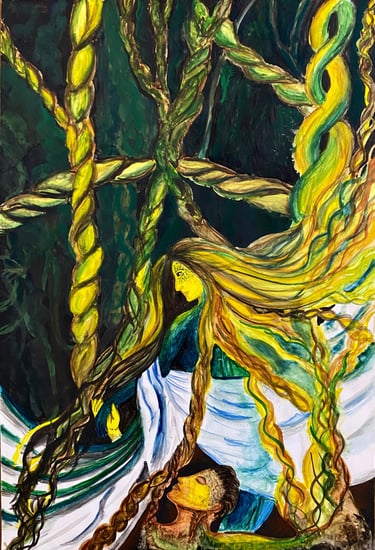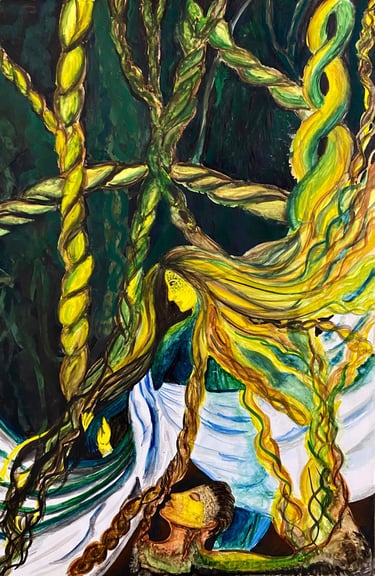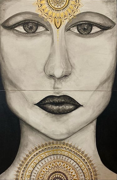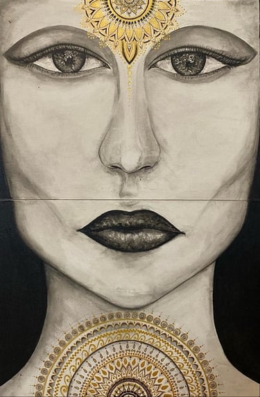 This artwork symbolizes the profound interconnectedness, portraying man being intricately woven from the essence of woman. it challenges conventional notions of gender and identity, the intertwining forms evoke a sense of harmony & balance celebrating the beauty of the power of unity